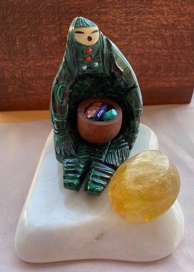 Talia Quandelacy (Zuni/Laguna/Choctaw) is an award-winning, third-generation indigenous artist specializing in Zuni carvings. A self-taught artist, she learned sculpture and jewelry from her parents, Faye Quandelacy and Franklin Carrillo. She has sold her artwork at the prestigious SWAIA Santa Fe Indian Market and the Heard Museum Indian Fair & Market.